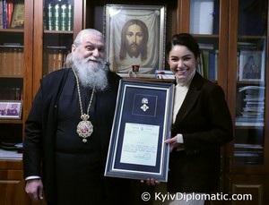 At the residence of His Holiness Patriarch Filaret of Kyiv and All Rus'-Ukraine, with the blessing of His Holiness, Archbishop Andriy of Pereyaslavl and Bila Tserkva awarded Elena Duma with a high church award - the Order of the Holy Great Martyr Barbara