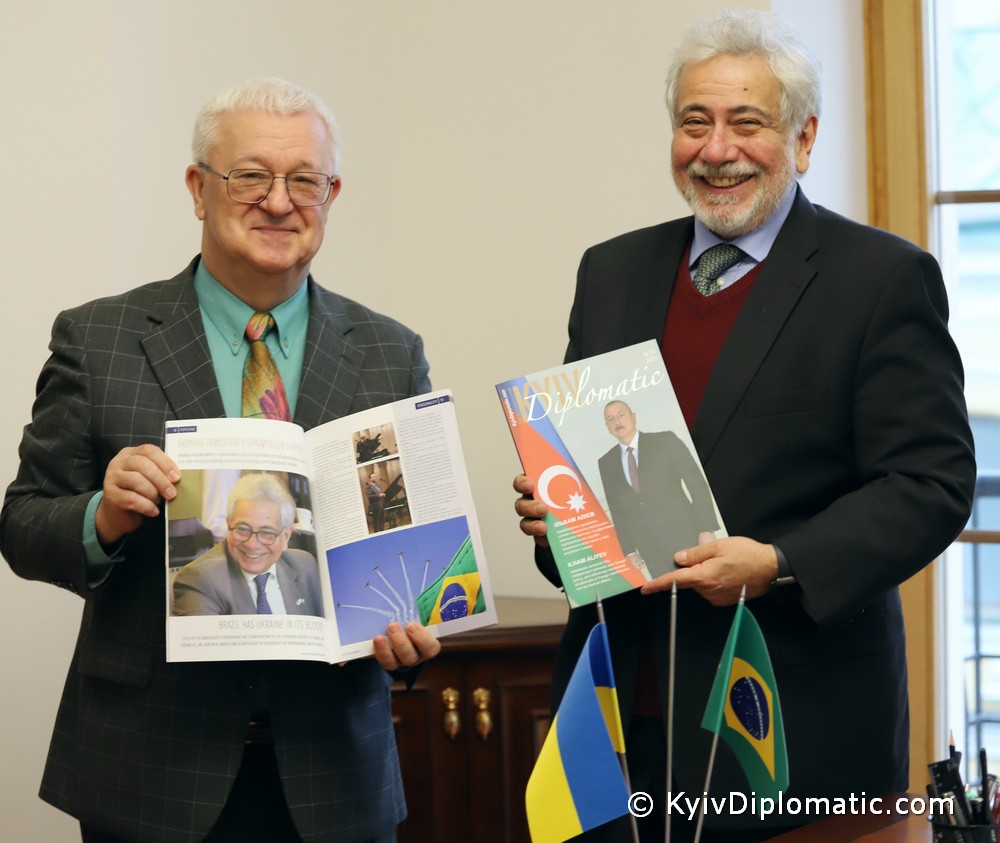 In the photograph taken by Yuliia Novytska: H.E. Norton de Andrade Mello Rapesta, Ambassador Extraordinary and Plenipotentiary of the Federative Republic of Brazil to Ukraine, and Oleksandr Kondratenko, Editor-in-Chief of magazine «Kyiv Diplomatic»