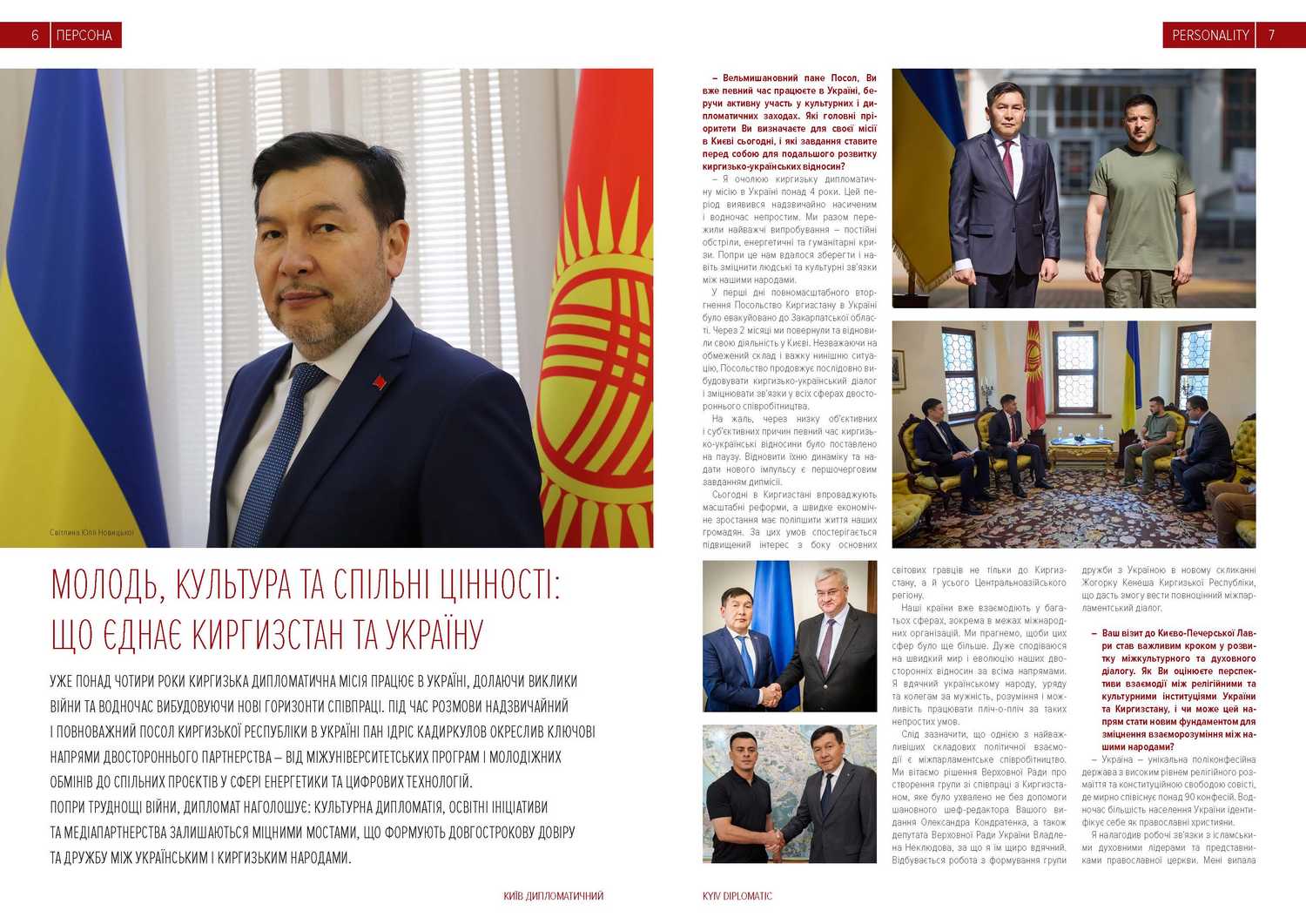 During our conversation, H.E. Idris Kadyrkulov, Ambassador Extraordinary and Plenipotentiary of the Kyrgyz Republic to Ukraine, outlined the key areas of bilateral partnership — from inter-university programs and youth exchanges to joint projects in the fields of energy and digital technologies.