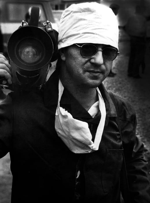In the photo — Oleksandr Kondratenko (April 30, 1986), while preparing another report from the Chornobyl Nuclear Power Plant for Ukrainian Television’s main news program “Aktualna Kamera”.