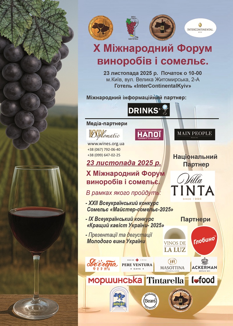 -  XXІІ Всеукраїнський Конкурс сомельє «Майстер- сомельє – 2025»,