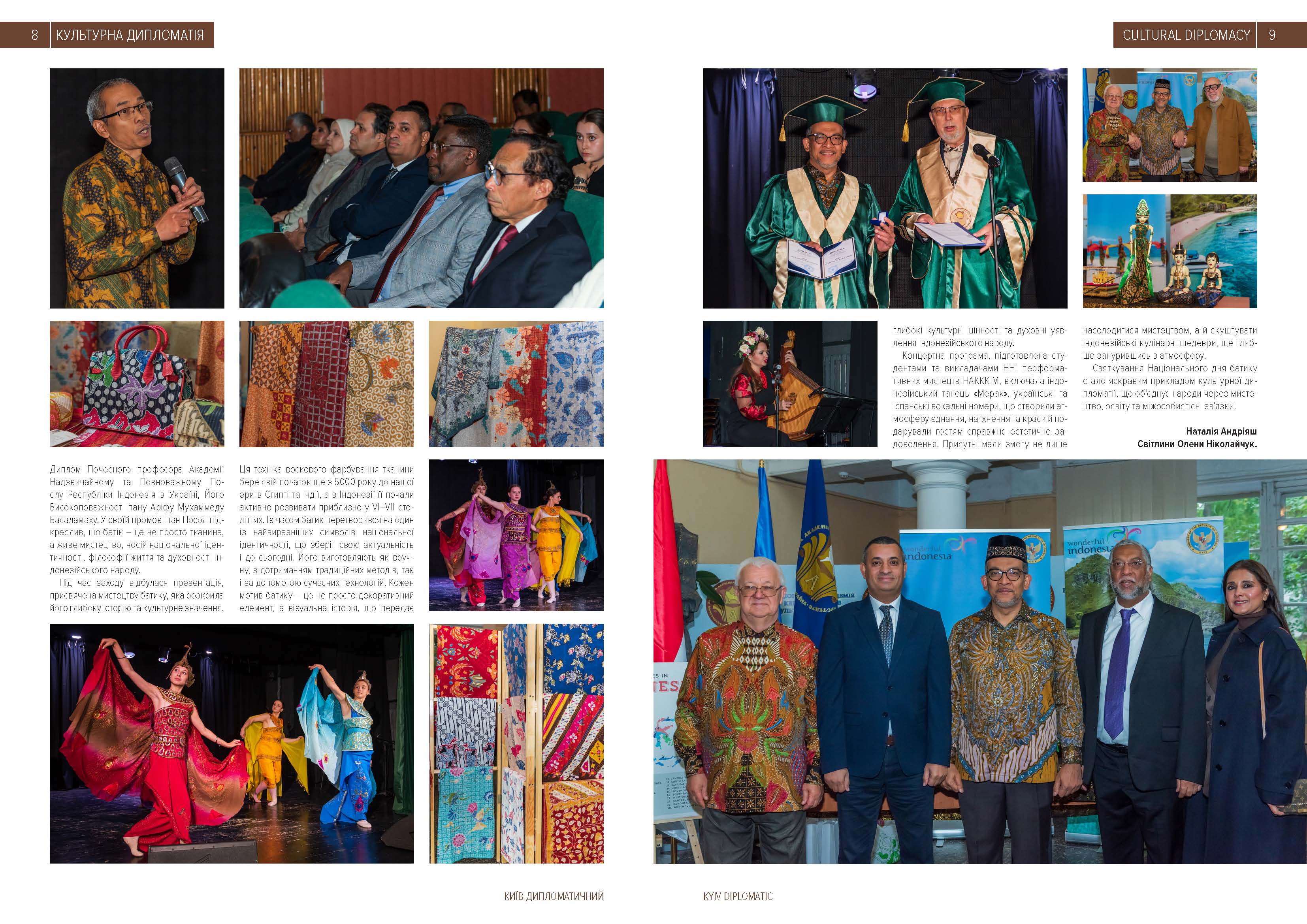 2 жовтня 2025 року в Національній академії керівних кадрів культури і мистецтв відбулося урочисте святкування Національного дня батику – знакового культурного явища Індонезії, визнаного ЮНЕСКО частиною нематеріальної спадщини людства. Цей день став прикладом міжкультурного діалогу, взаємної поваги та творчої співпраці між Україною та Республікою Індонезія.