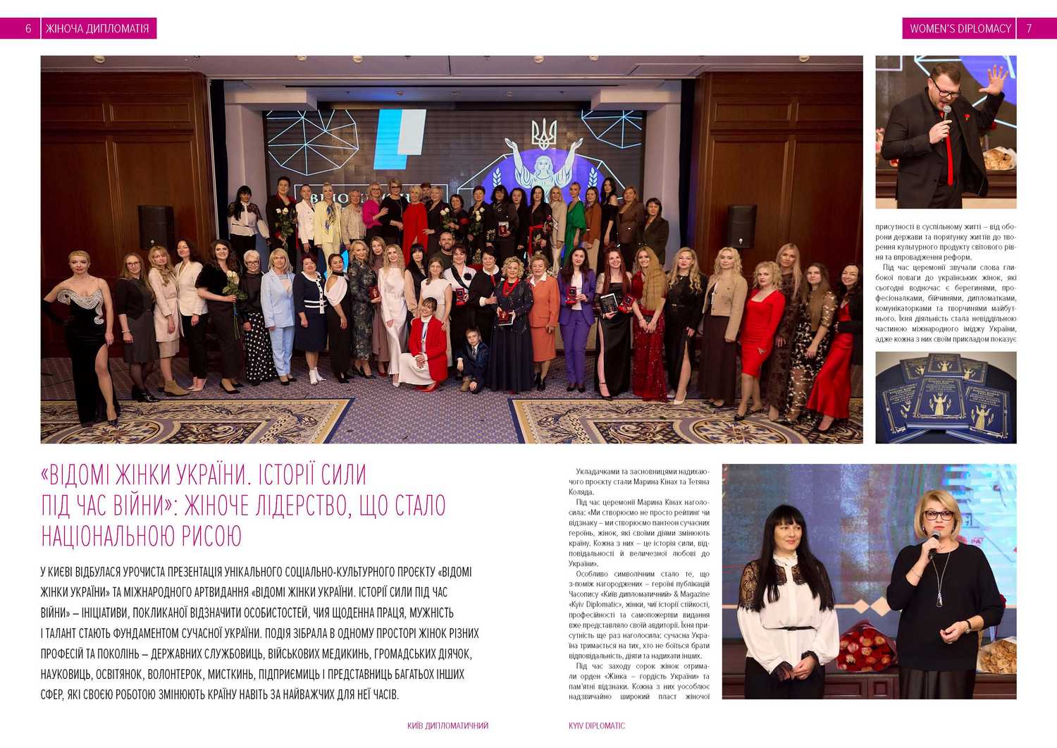У Києві відбулася урочиста презентація унікального соціально-культурного проєкту «Відомі жінки України» та міжнародного артвидання «Відомі жінки України. Історії сили під час війни» – ініціативи, покликаної відзначити особистостей, чия щоденна праця, мужність і талант стають фундаментом сучасної України. Подія зібрала в одному просторі жінок різних професій та поколінь – державних службовиць, військових медикинь, громадських діячок, науковиць, освітянок, волонтерок, мисткинь, підприємиць і представниць багатьох інших сфер, які своєю роботою змінюють країну навіть за найважчих для неї часів.
