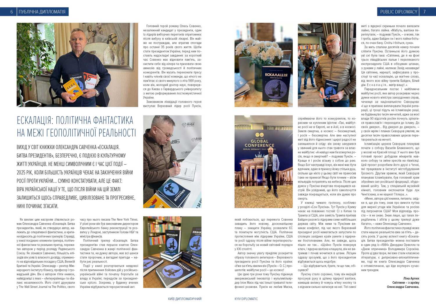 Вихід у світ книжки Олександра Савченка «Ескалація. Битва президентів», безперечно, є подією в культурному житті українців. Не менш символічним є і час цієї події – 2025 рік, рік, коли більшість українців чекає на закінчення війни росії проти України… Сумно констатувати, але це факт: віра української нації у те, що після війни на цій землі залишиться щось справедливе, цивілізоване та прогресивне, нині починає згасати.
