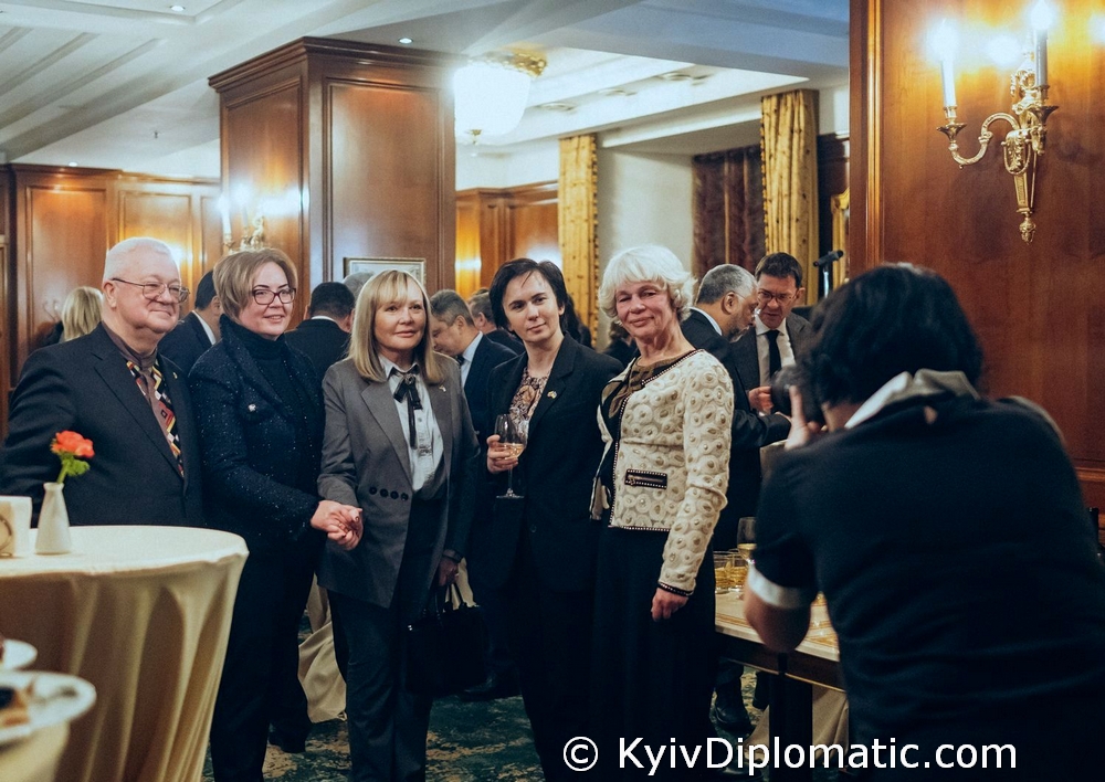 На світлині: Надзвичайний і Повноважний Посол Аргентинської Республіки в Україні пані Елена Летісія Тереса Мікусінскі, Надзвичайний і Повноважний Посол Литовської Республіки в Україні пані Інга Станітє-Толочкєнє, експертка з проєктів із країнами Сходу Департаменту комунікацій і міжнародної діяльності НСХУ, майстриня Олена Телятник, очільники Часопису «Київ дипломатичний» & Magazine «Kyiv Diplomatic» - арт-директорка, Почесна членкіня НСХУ, майстриня Людмила Новицька (Мила Фонрай), арт-дизайнерка, майстриня Юлія Новицька та шеф-редактор Олександр Кондратенко.