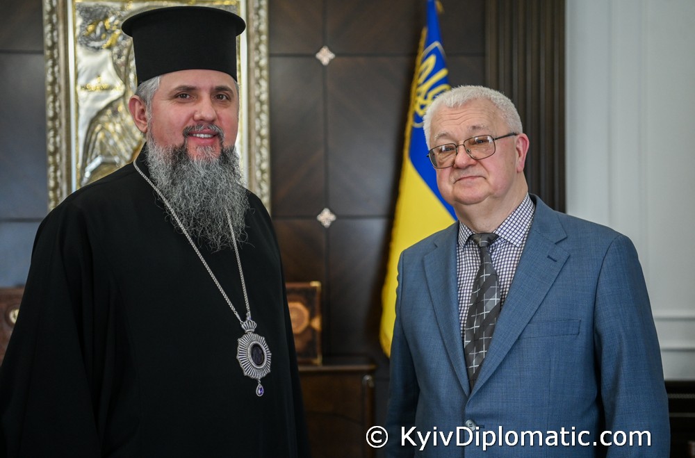 На світлині: Митрополит Київський і всієї України Епіфаній та помічник народного депутата України, засновник і шеф-редактор Часопису «Київ дипломатичний» Олександр Кондратенко.