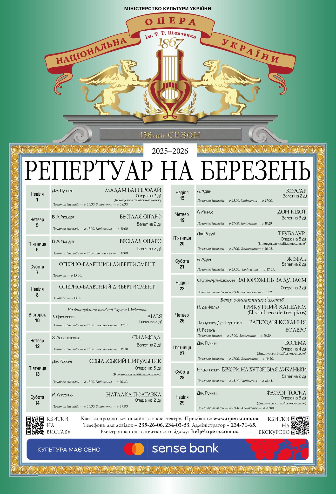 Березнева афіша Національної опери України
