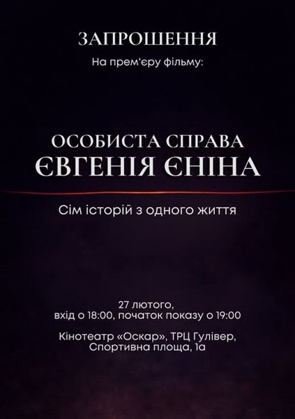 В останні дні лютого, разом із партнером нашої редакції Марком Орловським, на запрошення організаторів мав честь бути присутнім на прем’єрі документального фільму «Особиста справа Євгена Єніна. Сім історій життя»