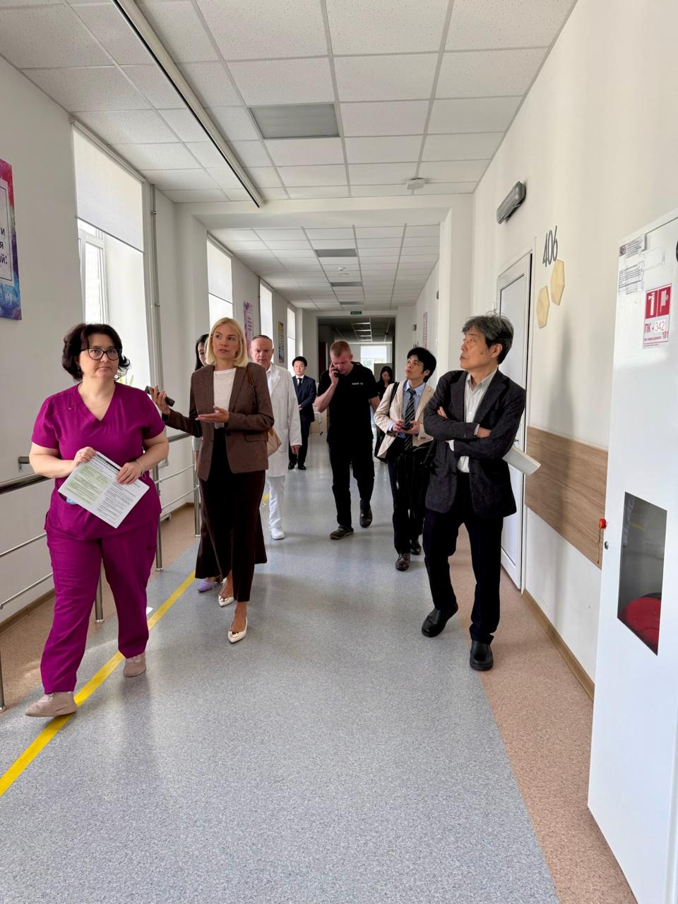 Dr. Mitsuo Isono та представників JICA (Японського агентства міжнародного співробітництва) зустрічає Маріанна Бровченко — завідувачка відділення нейрореабілітації лікарні №18