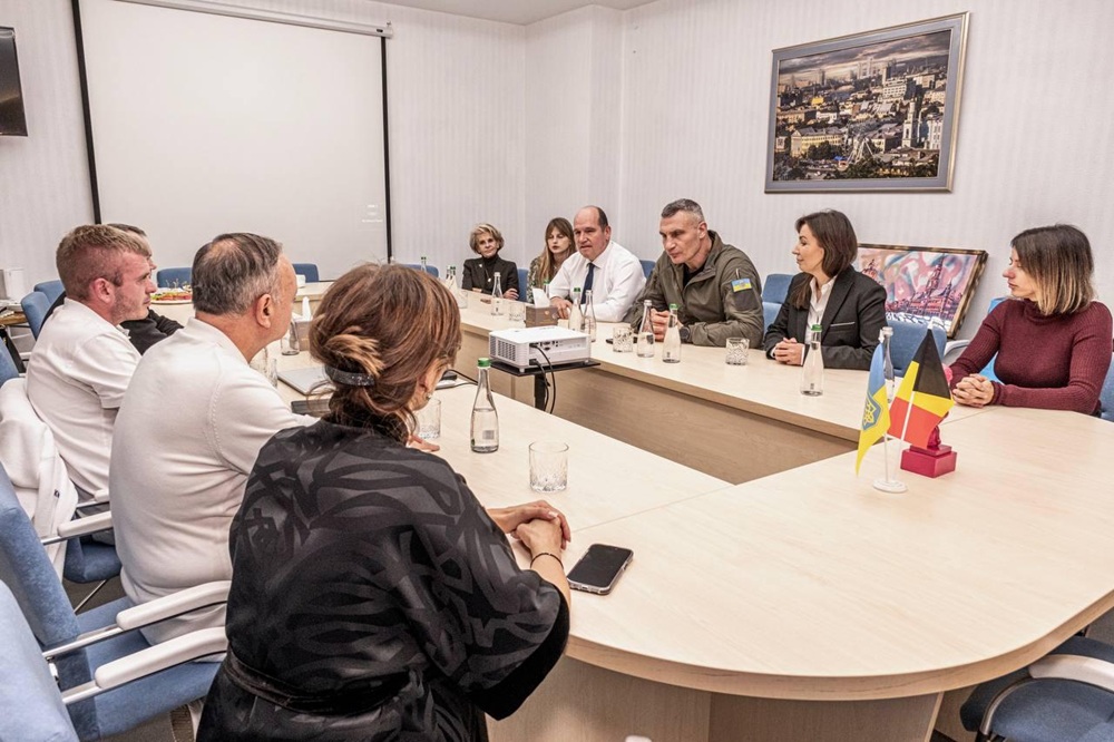 Мер Брюсселя Філіп Клоз, керівниця відділу міжнародних та економічних зв’язків Марі-Франс Ботт, мер Києва Віталій Кличко та очільниця Департаменту охорони здоров’я Тетяна Мостепан