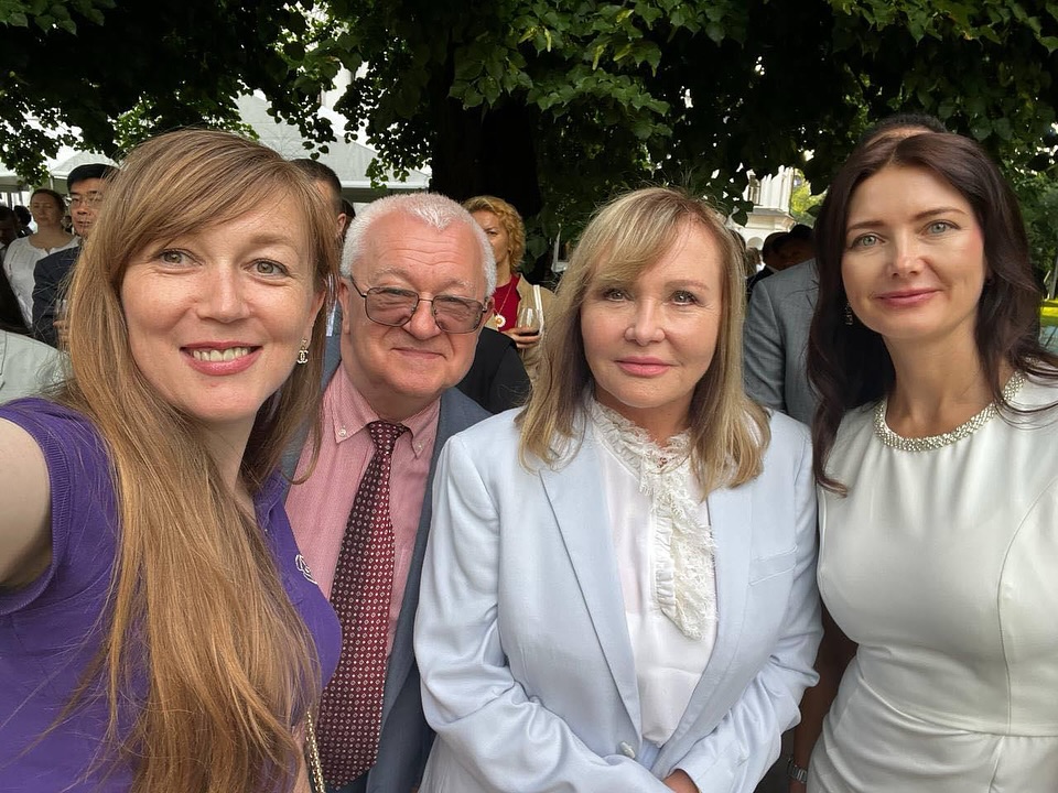 На світлині, під час дипломатичного прийняття: Надзвичайний і Повноважний Посол Аргентинської Республіки в Україні Елена Летісія Тереса Мікусінскі, власниця міжнародного глянцю «Business Woman», Президентка Business Woman Club Ганна Крисюк, учасниця Business Woman Club Світлана Манушко і помічник народного депутата України, засновник та шеф-редактор Часопису "Київ дипломатичний" & Magazine "Kyiv diplomatic" Олександр Кондратенко.