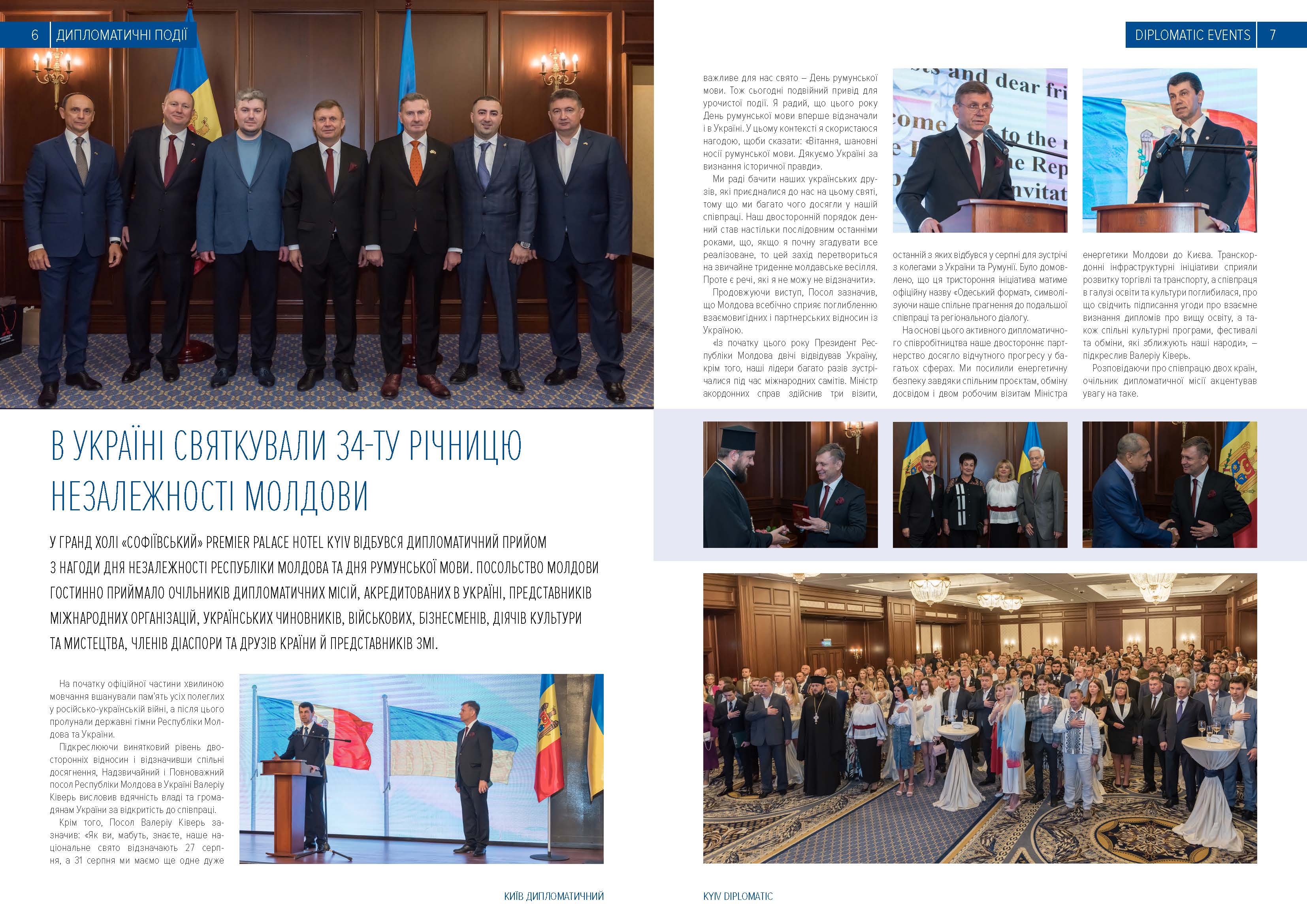 У Гранд Холі «Софіївський» Premier Palace Hotel KYIV відбувся дипломатичний прийом з нагоди Дня Незалежності Республіки Молдова та Дня румунської мови. Посольство Молдови гостинно приймало очільників дипломатичних місій, акредитованих в Україні, представників міжнародних організацій, українських чиновників, військових, бізнесменів, діячів культури та мистецтва, членів діаспори та друзів країни й представників ЗМІ.