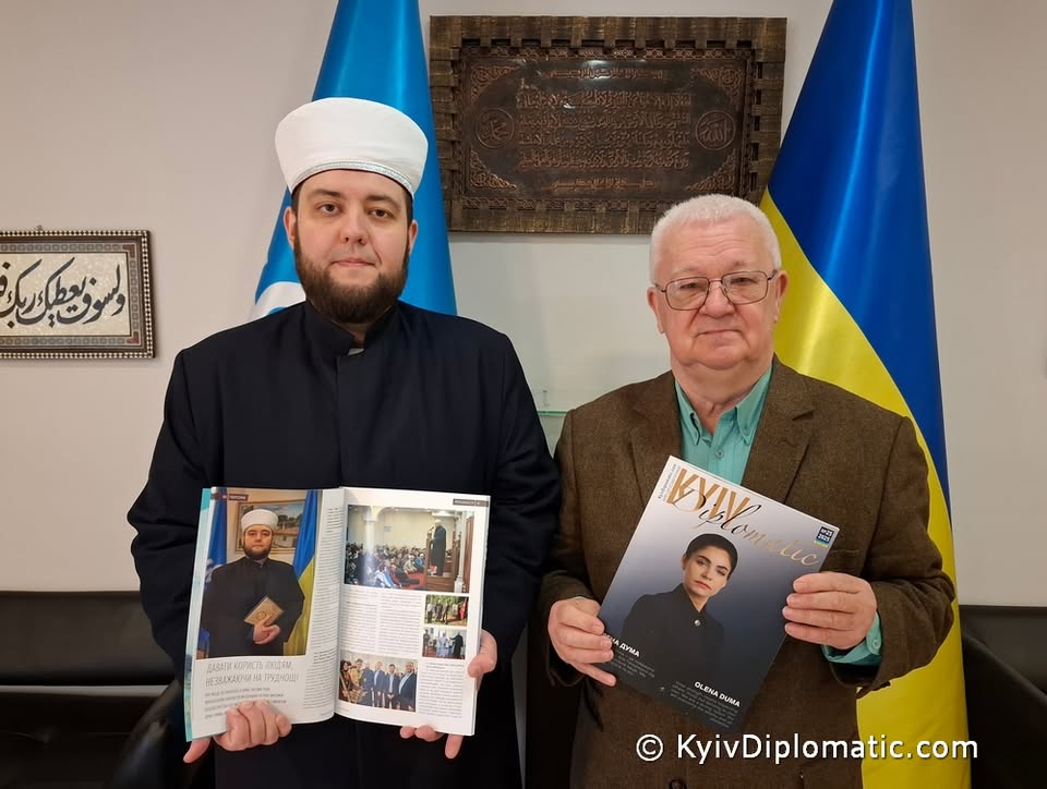 На світлин: Муфтій Духовного управління мусульман України «Умма», шейх Мурат Сулейманов і помічник народного депутата України, засновник та шеф-редактор Часопису "Київ дипломатичний" & Magazine "Kyiv diplomatic" Олександр Кондратенко.