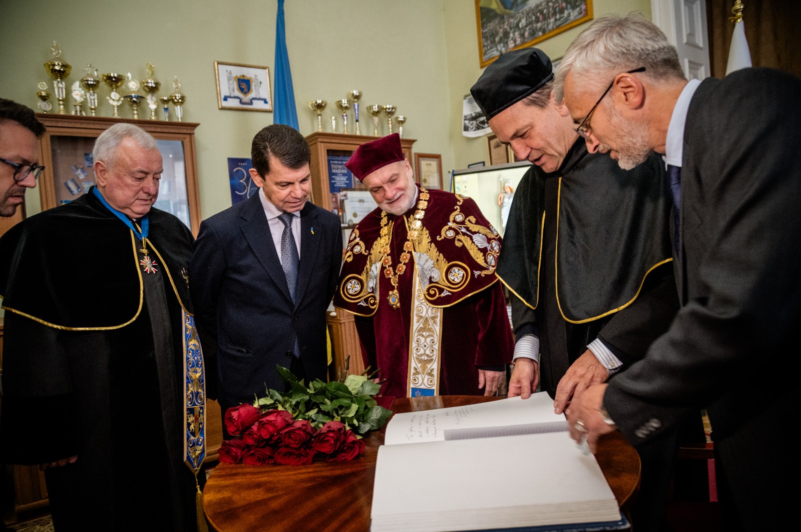 До ювілейних заходів долучилася делегація Міністерства закордонних справ України на чолі з заступником міністра Олександром Міщенком. Почесним гостем урочистостей став Віце-прем’єр-міністр - Міністр закордонних справ Республіки Польща Радослав Сікорський, який відвідав Львів у тому числі на знак солідарності з Україною на тлі постійних масованих російських обстрілів, у тому числі, що стався напередодні.
